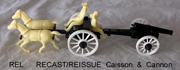 NONE - REISSUE cannon and caisson (black bodies and hubs and white wheels) + 2 horses and both riders in cream SP. ()