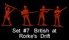 - Set#7 Zulu War British 4 in all 4 poses, red, 54mm, stiffer plastic.