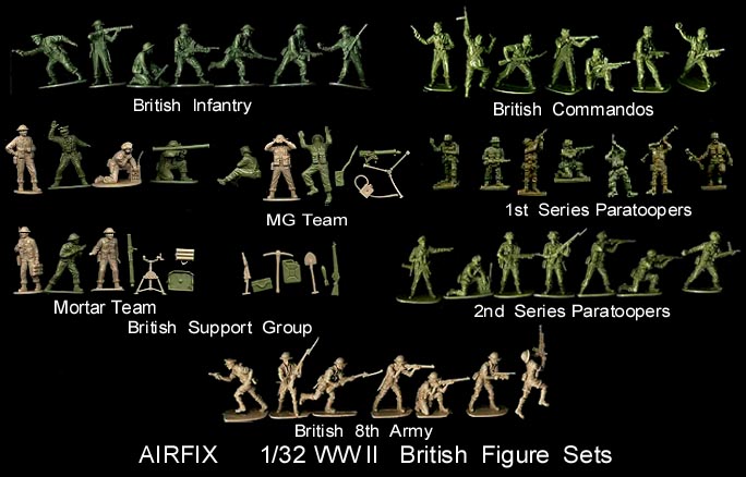 Now in 2009 Hornby new owner of the old Airfix molds has begun reissuing the WWII sets in small 14 figure boxes. Every pose in a particular set may not be in each box.