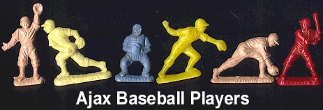 AJAX baseball players about 50mm in size and made of hard plastic. Painted figures may be marked Hong Kong.