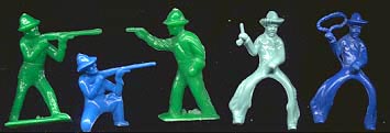 The Cowboys, Indians, football and baseball players were made by Ajax, then Joy Toy and some by Tootsietoy.