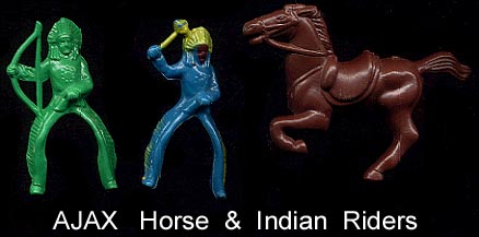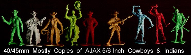 Ajax also made copies of some of the 60mm cowboy & Indian Bergen figures. If a "Bergen" figure does not have a logo then we assume it was sold by Ajax.
