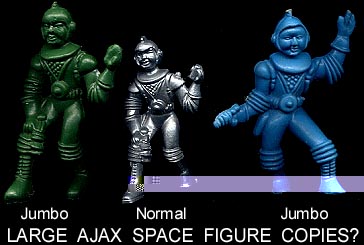 Jumbo sized Ajax space figures. Unsure if Ajax made them. Made of dense soft plastic.