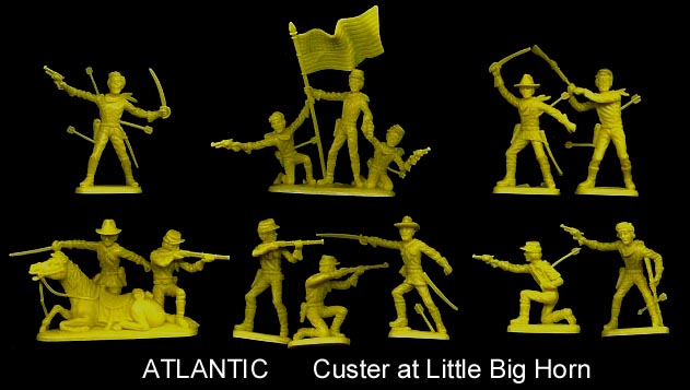 Ouch these guys look like pincushions. The set has 10 pieces including two multifigure scenes. The figures are found in a variety of blue colors in the boxed set, but for some reason they were put in yellow for the blister card. Figure on the top left represents Custer.