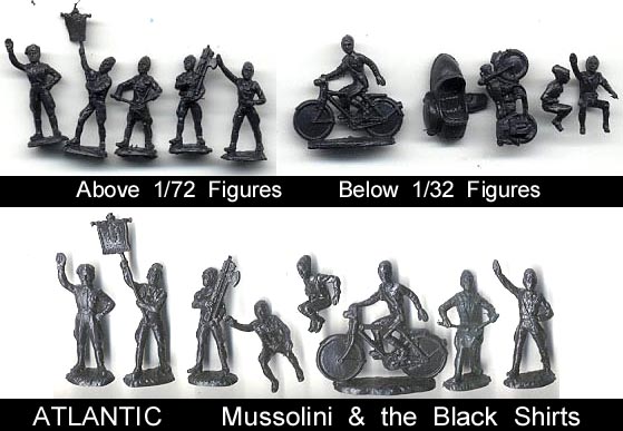 For some reason Atlantic made four WWII "Personality" sets featuring; Lennin & Stalin, Hitler, Musollini and Mao. These sets are very hard to come by. The Hitler set was banned for sale in much of Europe and so a stock of them was found a few years ago in a warehouse miking the set the easiest to obtain. The sets were also sold in little 1-3 piece boxes. In addition most of the figures in each set were also included in hand painted window box sets as seen below. The hard to find (in 1/32) Military Police figures can also be found painted in a window box.