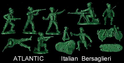 Blister Cards - Atlantic put at least some of these sets in small blister cards so kids could see what they were buying. The Medical Corp blister card never has all 16 pieces. A large double blister card was made for each of the four eras of History Atlantic produced figures in (Ancient, American West, WWI and Modern Military). The large double blister card each contained from 1 to 2 sets of opposing armies. The WWII card features Marines and Japanese, while the Modern Military one features Paratroopers and Commandos.