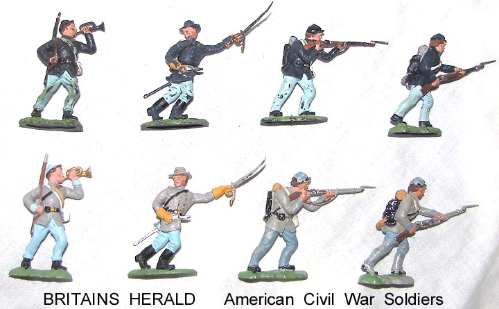 All of the American Civil War figures made by Britains were painted or produced in colors to be either Union or Confederate soldiers.