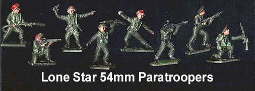 Lone Star British Beret TroopsThese 54mm soldiers are usually painted with red (Paratroop) berets, but we have seen several with the berets painted black. These figures are usually found with a paint loss of 50% or greater.