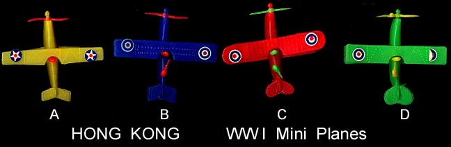 1.00 EACH Hong Kong WWI Mini Planes, planes have US or British markings at random. MADE IN CHINA missing gunner in all 2 seaters have US, British & German markings at random
