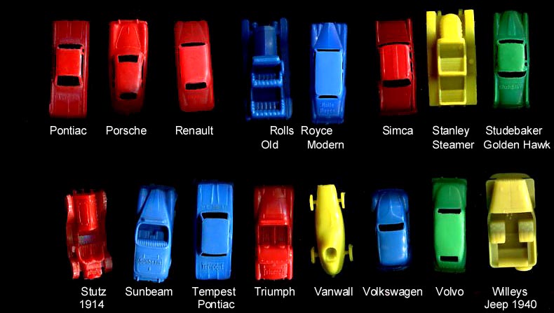 Dusenberg 1931; 1 green, 1 blue, 2 yellow, 3 red.