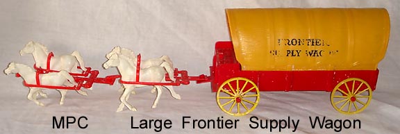 NONE - MPC big 8 inch long body Frontier Supply Wagon + two double hitches & four horses.