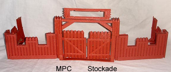 NONE MPC 2nd version Stockade, gate has ATTACHED 2 doors NO BAR, & 4 straight walls, redbrown.