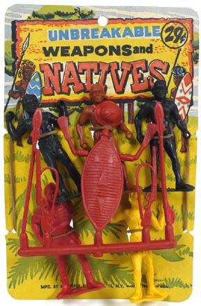 MPC copied three of the Tim-Mee 60mm Indians (they copied Marx in a 45mm size). Sometime these figures have holes in their bases and were sold with the three peg large (13 inch long) canoe.