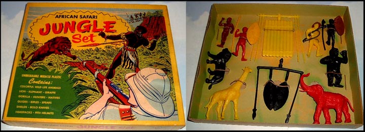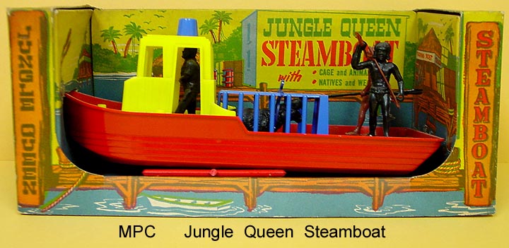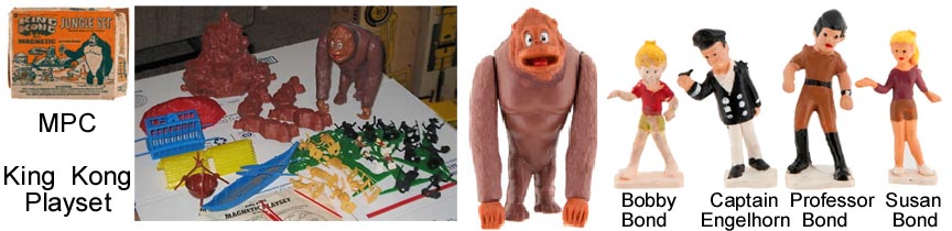 MPC made an interesting playset based upon the King Kong books and movies. Using their generic jungle figures, animals and accessories all they added was a large King Kong with magnetic hands and several character figures (with magnets so Kong could pick them up).