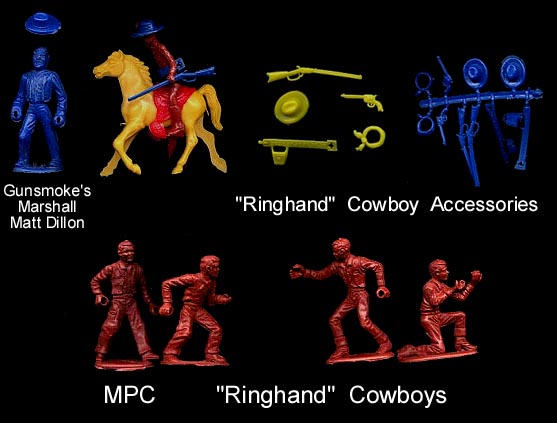 MPC had hard plastic figures of the Lone Ranger and Tonto produced at their Hong Kong facility. They used these figures with their regular soft plastic unpainted figures.