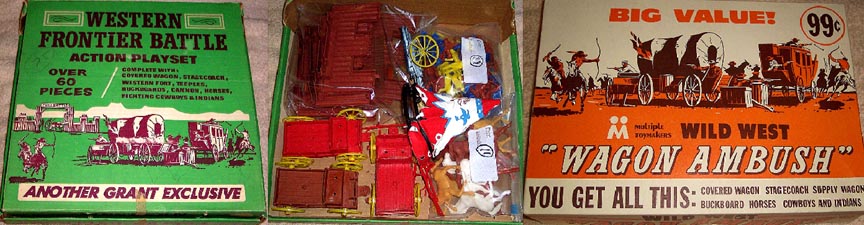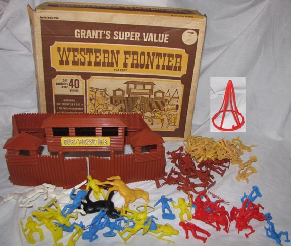 SOLD - MPC Grant's exclusive. Box says; wagon, stagecoach, canoe and two teepees which are not included. Also says 40 pieces but there are 60 figures, 4 horses, 2 pc fort and teepee frame. Fort in good shape.