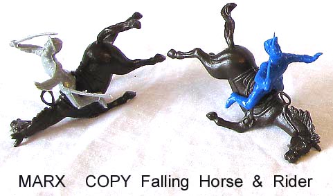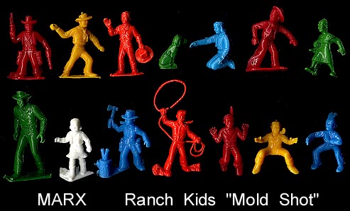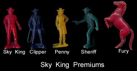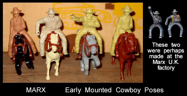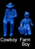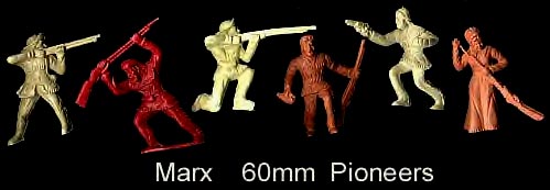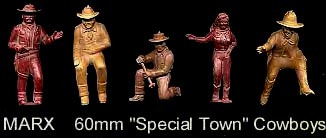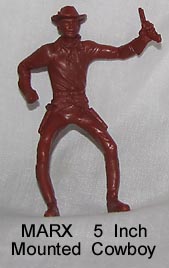 Both sets have been said to be by Marx. A careful examination of the Marx mold list erases this thought as there is no evidence that Marx made either of the following two groups of cereal premium figures. Early toy figure dealers knew that Marx figures sold for higher prices and so labeled these figures as Marx. We do not know who made them but we do know that Marx did not. The same problem exists on ebay as many many auctions label nonMarx figures as Marx in hope of getting a higher sale price.