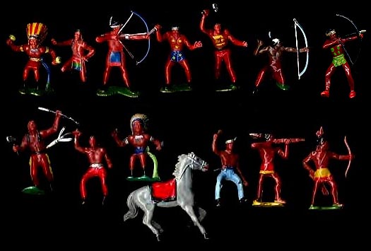 12.00 RECAST all six 3 Inch Indians in six poses, very dark purplebrown, a few feathers may be short. (1 IN STOCK)