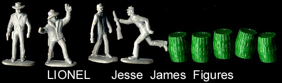 15.00 Lionel Jesse James 30/35mm figures, some damaged + barrels.