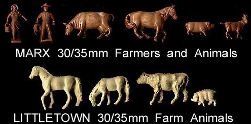 13.00 K-4175 23 Farm animals with paint, mix of Marx 35mm animals and 54mm baby animals all in a flesh color. (1)