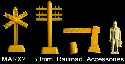 NONE - RECAST Marx "Sears Town Playset" store accessories/merchandise for their 30mm figures. We got 29 of the original 38 pieces that were made in this mold. Pieces in a mix of colors, HP.