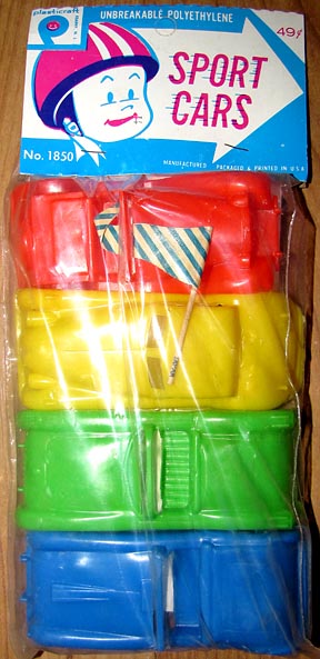 Set #1850 SPORTS CARS; Four soft plastic cars that each maybe 3-4 inches long, MIB.