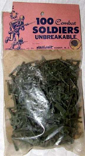 - 45.00 Plasticraft #998 100 Combat Soldiers, 30/35mm circa 1960s.