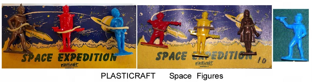Plasticraft made six 50mm space figures in hard plastic and sold them on cards. Three figures for 10 cents.