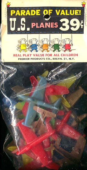U.S. PLANES header card bag, about 20 airplanes that look like the ones sold by PAYTON. Both companies were located in Brooklyn and probably used the same mold maker.