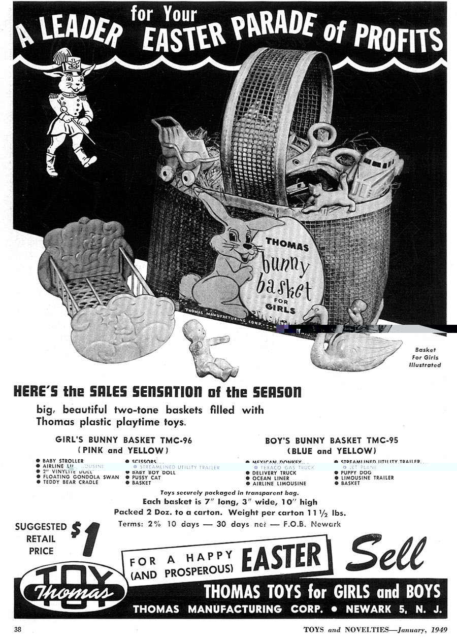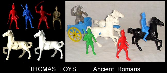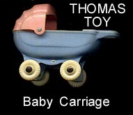 Thomas used a variety of figures in their doll houses and blister card sets. They are usually found in rubber like vinyl and can be very rubbery. The smaller one inch baby was the first soft plastic figure sold in the united states in 1947.