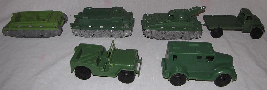 Above picture shows two incomplete examples of some of the vehicles that came with the white GIs. The jeep is bigger than 54mm.