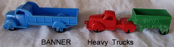 Banner was owned by Emanuel Pressner and Bernard Schiller about 1944 at 150 Buckner Blvd, Bronx New York. They bought Bergen Toy and Novelty (BETON) in 1958 and Bonnie Bilt and Thomas MFG (toys) about 1960. They went out of business around 1967.