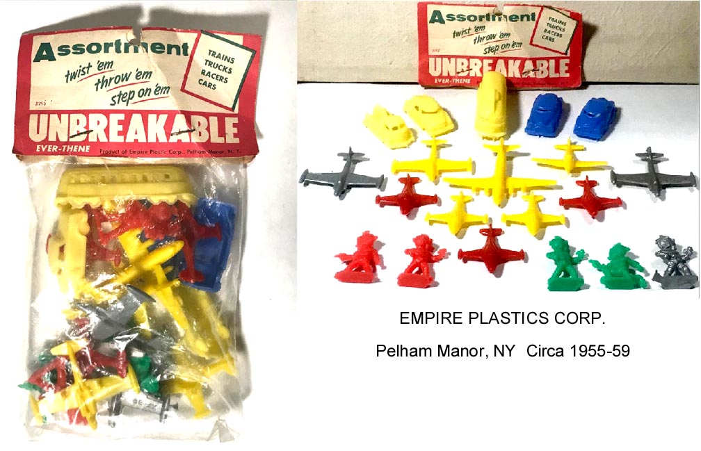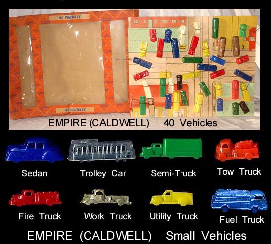 Boxed set, 40 Vehicles, hard plastic, Circa 1950-52, Empire Plastic Corp with Bronx address.
