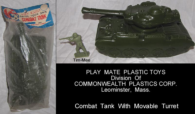 Tank (blow molded) with headercard bag, Tim-Mee figure to show scale and is not included. Tank removed from bag for picture.