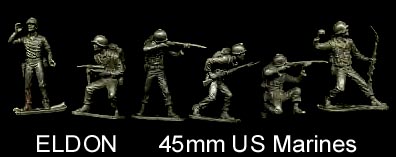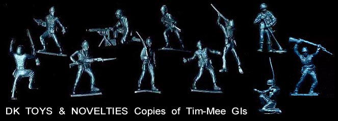 The Plastic Toys and Novelties Corporation made copies of the Tim-Mee 60mm GIs in Metallic blue and army green. These were misidentified as having been made by Eldon in the Geppert Guide.