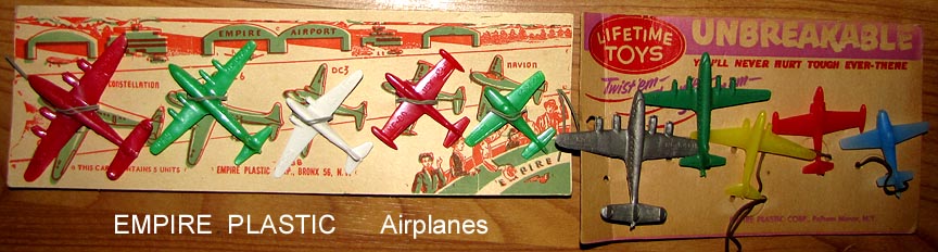 Empire made some nice mini airplanes that were then copied by Lido and may have influenced MPC. They were originally made in hard plastic but by the time they moved to Pelham they were made in "UNBREAKABLE" soft plastic. The Lido copies are marked "LIDO" and include a X-15 that was not made by Empire.
