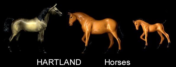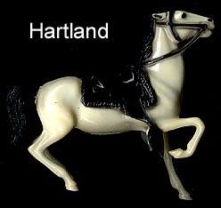 Another small maker from the 1950s who made small vehicles and these farm animals. Animals have the Allied logo on their sides in a circle but often it was not molded completely and is unreadable. Perhaps copying Auburn they painted the top of the backs of the horses and cows. Animals are hollow and were made in two pieces and glued together. See Caldwell below for more Allied info.