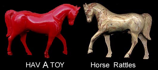 Empire Plastics also sold under the Hav A Toy name as can be seen on the box in the picture below. Most of the large animals are hollow and act as rattles. Animals with legs are marked HAV A TOY inside one leg.