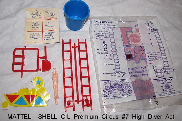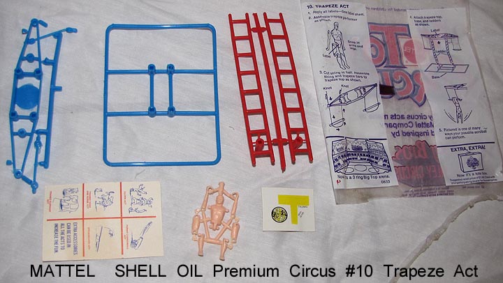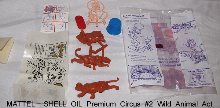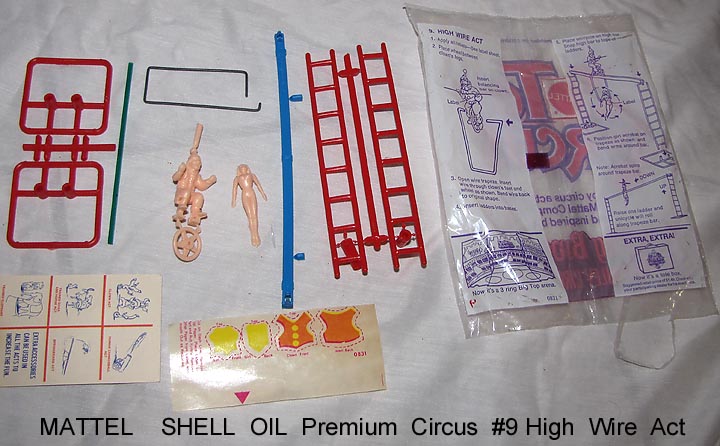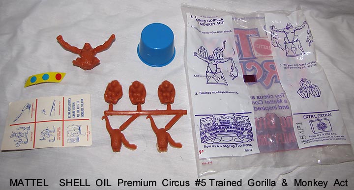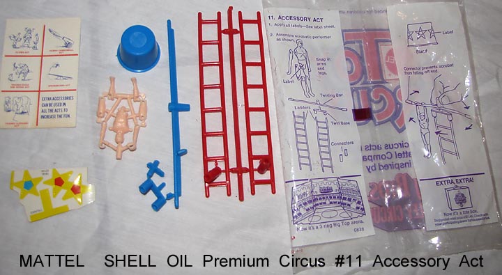 - 1972 Mattel Shell Oil premiums, bags opened to show contents. Compatible with Marx circus playsets.