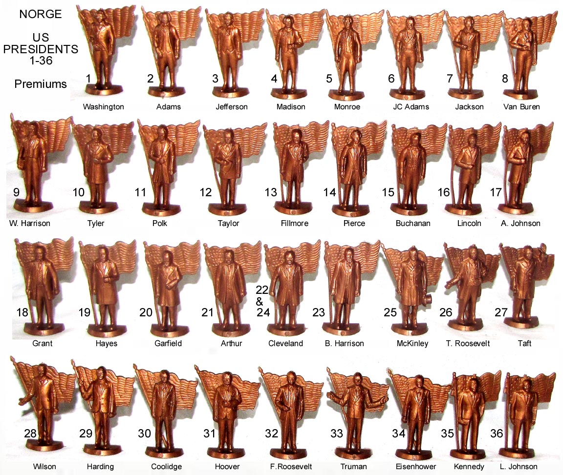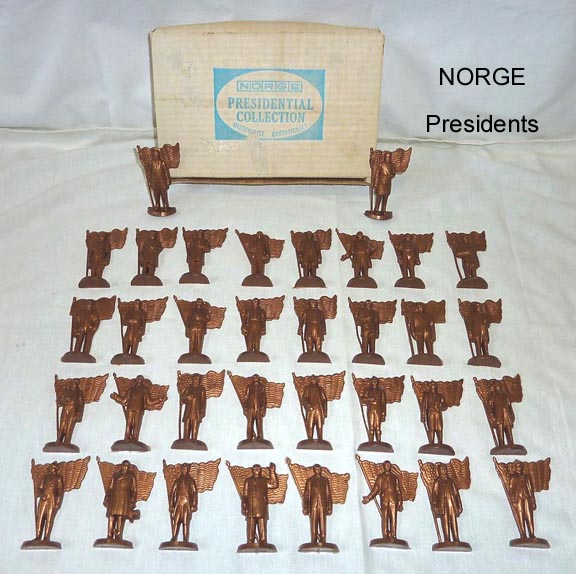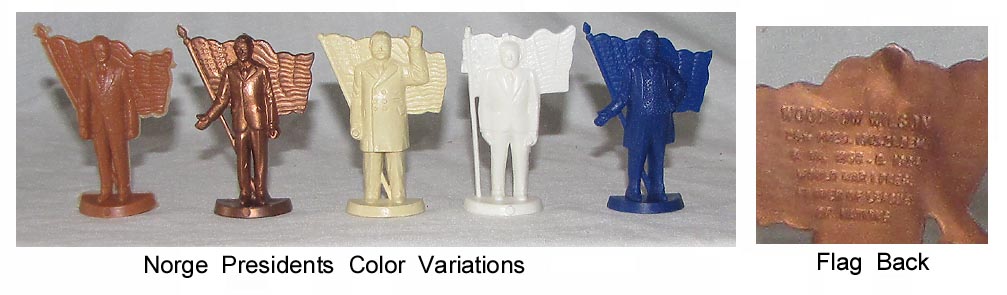 Norge made a series of soft plastic US President from Washington through LBJ. Half round with name and other information on the flat rear side.