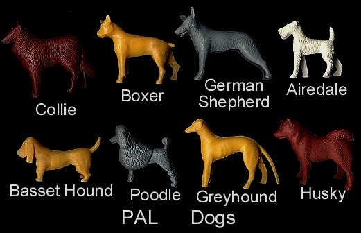 Pal made at least 8 different hollow body dogs. The husky was found in Eskimo sets while all of the dogs were sold on blister cards as seen in PFPC issue 32 page 25. Usually made in soft plastic white hard plastic examples were sold in you paint them header card bags.