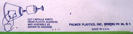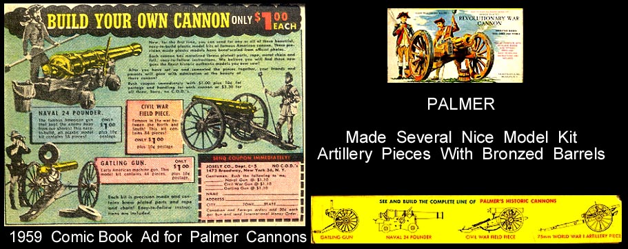Palmer was a small company located in Brooklyn, New York. They made a nice range of hard plastic model car kits along with five hard plastic "cannon" kits. The barrels of the cannons were somehow coated in brass for a more realistic appearance. Eventually by the mid to late 1970s both Palmer and Payton (also in Brooklyn) were bought by Winneco and in the early 1980s all were bought by H-G Toys. So company name on packaging may vary.