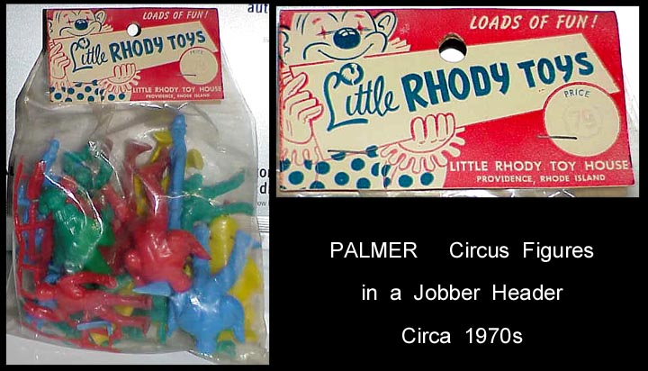 Picture courtesy David Schafer. The owner of Palmer died in 1972 and the company was sold to Winneco Industries we we think also took over Payton also located in Brooklyn. This jobber bag of circus figures was probably produced in this time period. By the late 1970s Palmer and Payton were bought by HG Toys. The Palmer circus (Sideshow) figures seem to be about 60-70mm in scale. Six of the eight figures originally came with separate accessories. These small pieces have had a way of disappearing over time.