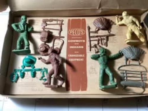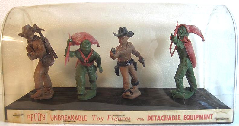 An interesting company they copied the Timmee line for their Cowboys and Indians. They copied Ideal for their GIs. The GIs were made in a plastic very similar to the Timmee figures and it is supposed that a Timmee (or exTimmee) employee was some how involved as Werner was also located in Illinois. One sure way to tell them apart from Tim-mee figure is the mold cavity number found on the back of each Werner western figure.