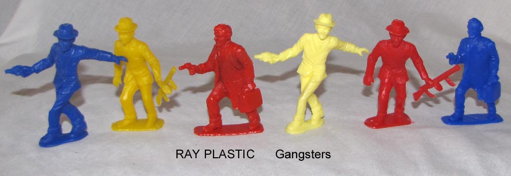 Ray Plastics made plastic bullet shooting Gatling guns, pistols, rifle and dart guns. For targets they made copies of MPC, Lido, Marx and Tim-mee figures.
