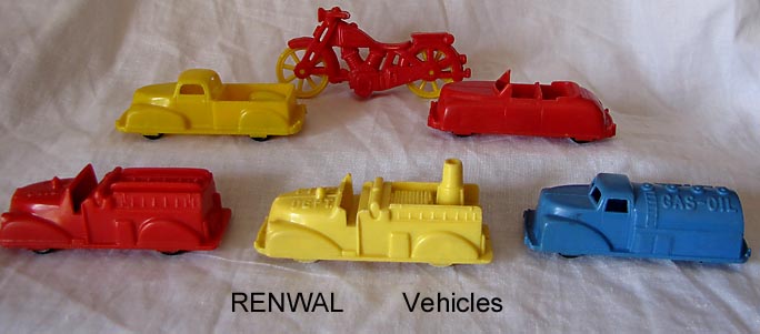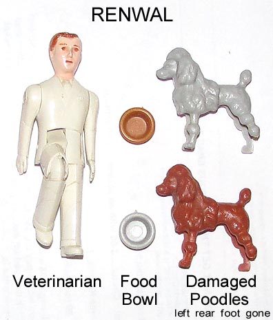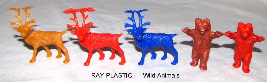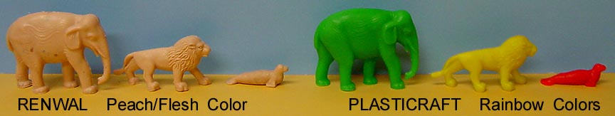 These animals were first made by Renwal in the late 50s for their zoo playset. Renwal decided to get out of the toy business and concentrate on their model kits and sold off their toy molds in the 1959/60 period. Plasticraft bought a number of the molds like the Viking Ship, Panama Canal, drawbridge and zoo sets and sold the items in their own packaging. Pictures courtesy David Schafer.