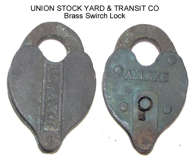 - UNION PACIFIC SWITCH CS 1, cast on back of lock, ADLAKE incised on dust cover, has chain, Key marked ADLAKE Main line brass switch lock.
