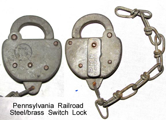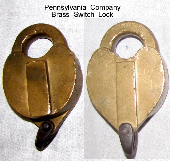 - PENNA Co incised shackle rear, Bohannan, 89, S incised shackle front. Brass heart shape switch lock, no chain. Pennsylvania Company Railroad (Lines West of Pittsburgh)