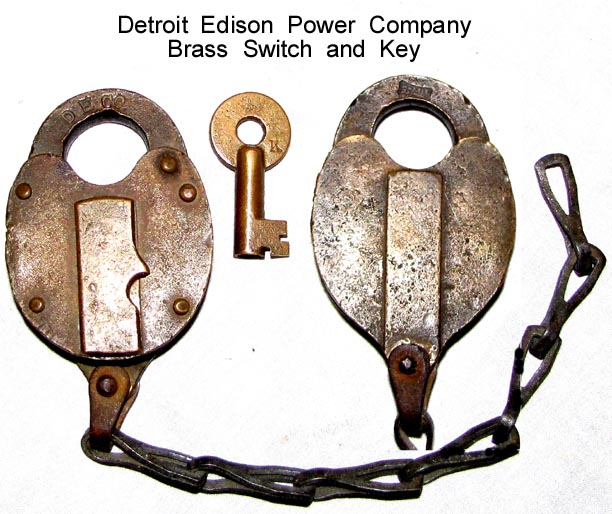 - DECO (Detroit Edison Company incised shackle front, FRAIM (Banner Logo) incised on shackle rear, brass heart shaped lock, no chain. Has working key DECO FRAIM (banner logo).