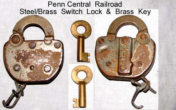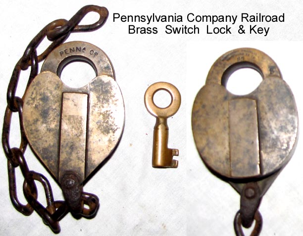 - PENNACO (Pennsylvania Company Railroad) cast back panel, no makers mark. No chain. Has key marked RB owner's initials?. Nice working brass heart shaped switch lock.